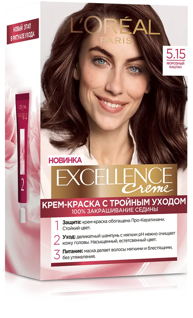 Фарба для волосся L'Oréal Paris (Лореаль Париж) Excellence Creme містить унікальний комплекс активних інгредієнтів, забезпечує догляд волоссю під час і після фарбування.