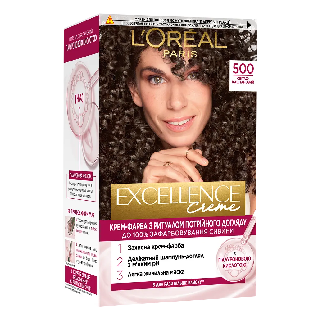 Фарба для волосся L'Oréal Paris (Лореаль Париж) Excellence Creme містить унікальний комплекс активних інгредієнтів, забезпечує догляд волоссю під час і після фарбування.