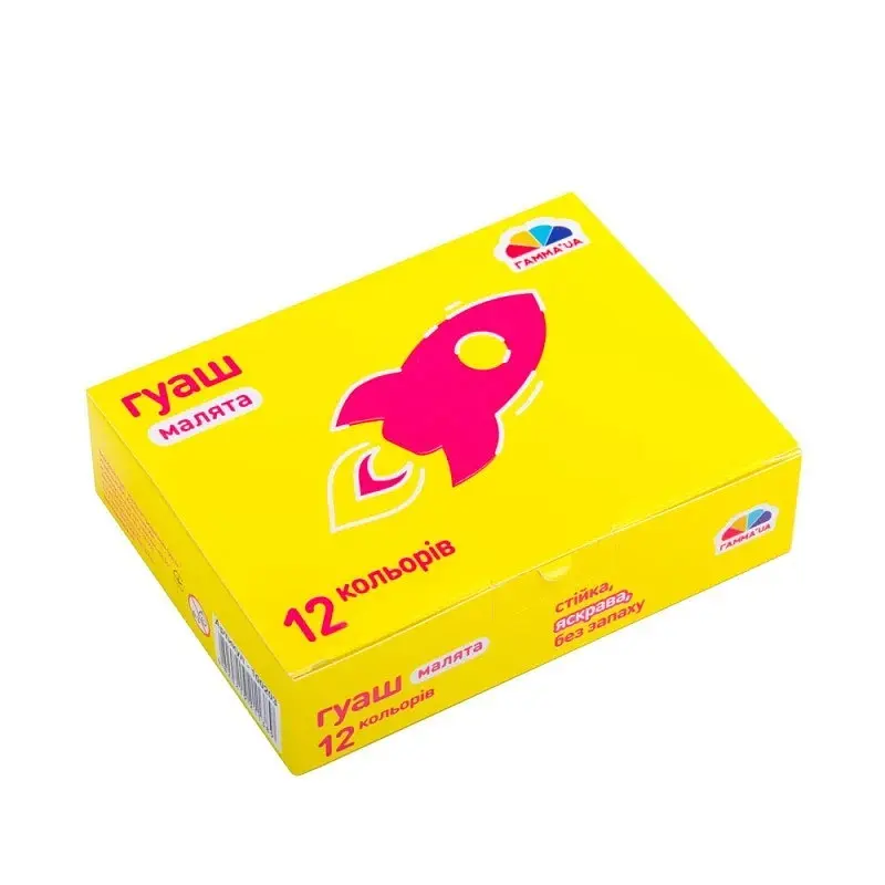 Гуаш "ГАММА'UA" є водорозчинною фарбою без запаху. Вона призначена для малювання на ґрунтованих полотнах або папері дітьми дошкільного та шкільного віку. Робота з фарбами сприяє прояву фантазії, вчить дитину думати на кілька кроків уперед, позитивно позначається на уважності та акуратності. Гуаш "ГАММА'UA" купити можна в наборах по 12 кольорів. Кожен набір поставляється в картонній упаковці, а окремі кольори поміщені в герметичні пластикові баночки по 10 мл. Гуаш "ГАММА'UA" для домашньої та шкільної творчості Фарби цієї лінійки без запаху, не містять токсичних речовин. Нічого страшного, якщо дитина спробує малювати ними не за допомогою пензлика, а використовуючи власні руки. Гуаш для дітей має гарну пластичність, відмінно береться на пензлі. Кольори на папері виходять насиченими, що тішать очі дітей та дорослих. Фарби швидко сохнуть, легко видаляються з рук та інших поверхонь під водою. Купити гуаш "ГАММА'UA" також варто через: великий термін служби — навіть через кілька років фарба придатна для використання; можливості змішування кількох кольорів між собою — діти дуже люблять експериментувати з квітами; наявність всіх базових кольорів у наборі.