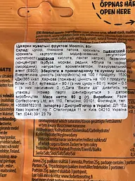 Суміш чотирьох фруктових смаків цукерок у формі Мумі-тролів, ніжних, як обійми від Мумі-мами. Пакетики прикрашені улюбленими персонажами: Мумі-тролем та Маленьким Мі. Цукерки Мумі-тролі не містять лактози та підходять для веганів. Цей маленький пакетик цукерок – ідеальний вибір для частування або подорожі.