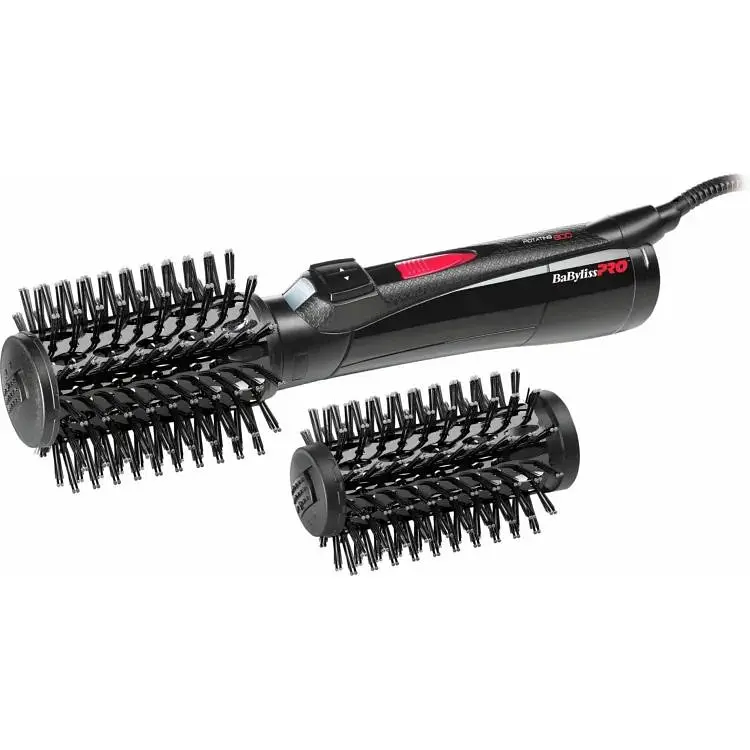 Фен-щітка BaByliss PRO BAB2770E оснащена двома знімними щітками: одна діаметром 50 мм для роботи з дуже довгим волоссям і друга - 40 мм для більш короткого волосся.