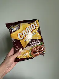 Смачні, мають дійсно подібний смак до ковбасок. Не помітила, як зʼїла всю пачку. В міру в приправі. Хрумкі і легкі, розтають у роті. Під фільм - саме те.