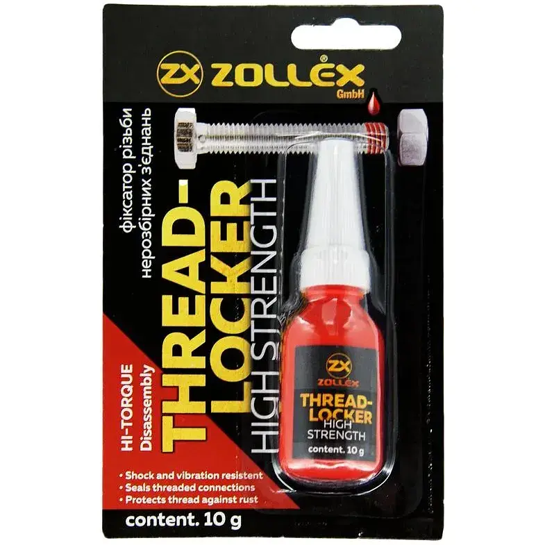 Фіксатор різьбових з'єднань Zollex BFS-2 червоного кольору досить міцний, має високу ступінь вібростійкості.