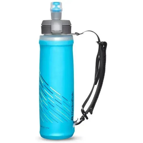 HydraPak SkyFlask™ Speed 500ml - м'яка пляшка від бренду HydraPak. Легка та компактна, завдяки гнучкій конструкції. Ви можете зручно тримати її під час бігу за допомогою регульованого ремінця. У герметичної кришки є поворотний замок, тому рідина не проллється. Пляшка зроблена з надміцних зварних швів TPU та RF, стійких до стирання. Це ідеальний варіант для бігу, туризму та подорожей.