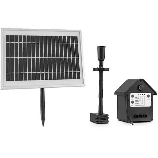 Особливістю сонячного насоса Blumfeldt Wasserwerk 500 є його повна незалежність від джерела живлення, підключеного до мережі. Як випливає з назви, він працює виключно від енергії сонця. Щоб це працювало належним чином, він містить сонячну панель із фотоелектричною площею приблизно 600 см². Навіть у похмурі дні він забезпечує достатню потужність для роботи маленького насоса та пропускання до 500 літрів води на годину через форсунки. Надлишок виробленої електроенергії зберігається в акумуляторі, що входить до комплекту, який захований у привабливому будиночку. Коли він повністю заряджений, він може живити насос і освітлення до чотирьох годин. Для кріплення сонячної панелі додається заземлювальний шип, який можна легко перемістити, щоб сонячні батареї оптимально залишалися на сонці протягом дня. Крім того, монтажне кріплення можна також встановити стаціонарно.