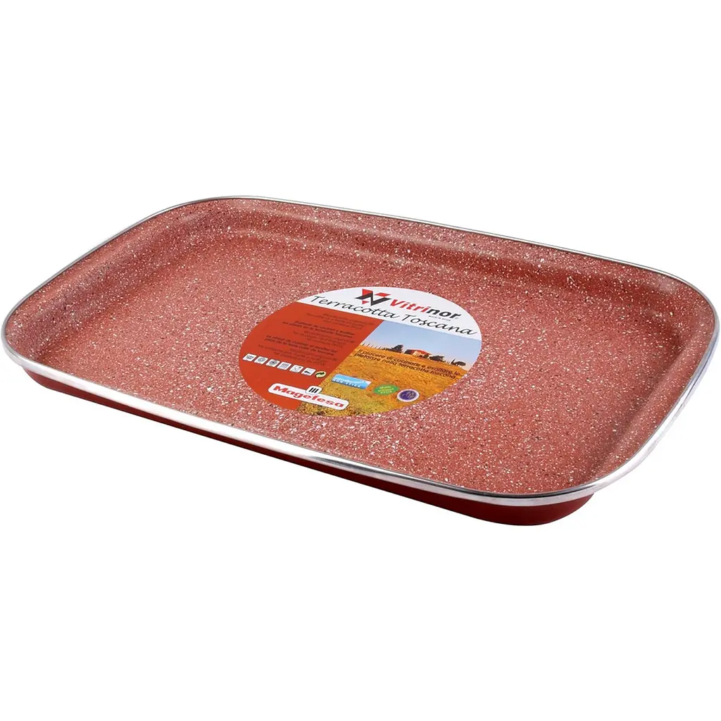 Деко Vitrinor Toscana з антипригарним покриттям, виготовлене з емальованої сталі, загартованої при 820ºC. Антипригарне покриття позбавить вас від використання зайвої олії, прокладок з паперу та фольги.