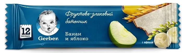 Фруктово-злаковий батончик Gerber (Гербер) Банан і яблуко - відмінний перекус як для дітей, так і для дорослих.