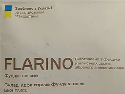 Якісні горішки великого розміру, всі цілі та не поламані. Смак приємний і свіжий, добре підходять як корисний і поживний снек. Після легкого підсмажування шкірка легко знімається і смак стає ще кращим. Фундук Flarino смачний також у чорному шоколаді. Загалом дуже позитивні враження від продукту.