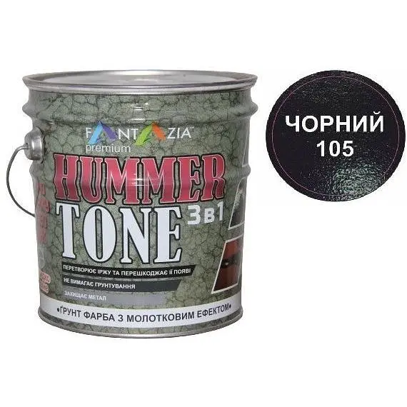 Більше вибору кольорів: Молотка фарба розроблена на основі алкідних смол. Створює декоративне, антикорозійне покриття. Після нанесення утворюється плівка, яка захищає поверхню від корозії й атмосферних впливів. Фарба може наноситися без використання антикорозійного ґрунту. Сфера застосування: Молотка фарба Хамертон використовується для антикорозійної та декоративної й оброблення поверхонь із металу та оцинкування. Також може наноситися такі поверхні, як пластмас, дерево та бетон для отримання ефекту "молотка". Використовується як для зовнішніх, так і внутрішніх робіт. Середня витрата: 8-10 м2 на 1л. Висихання: 30 хвилин на дотик, 3 години міжкрокове.