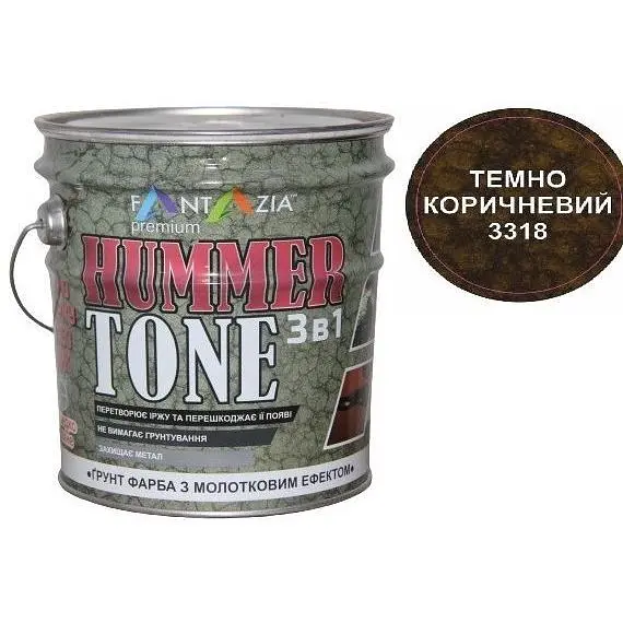 Більше вибору кольорів: Молотка фарба розроблена на основі алкідних смол. Створює декоративне, антикорозійне покриття. Після нанесення утворюється плівка, яка захищає поверхню від корозії й атмосферних впливів. Фарба може наноситися без використання антикорозійного ґрунту. Сфера застосування: Молотка фарба Хамертон використовується для антикорозійної та декоративної й оброблення поверхонь із металу та оцинкування. Також може наноситися такі поверхні, як пластмас, дерево та бетон для отримання ефекту "молотка". Використовується як для зовнішніх, так і внутрішніх робіт. Середня витрата: 8-10 м2 на 1л. Висихання: 30 хвилин на дотик, 3 години міжкрокове.