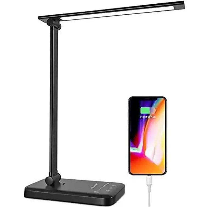 HAODEMI Настільна лампа Світлодіодна настільна лампа Настільна лампа Підставка 5 кольорових ламп 5 рівнів Яскравість Сенсорний датчик Кут регульований Настільний світильник з USB-портом Книжковий світильник з підставкою для смартфона