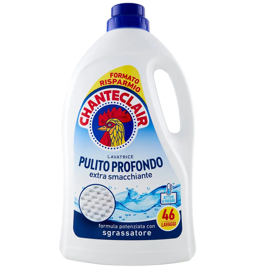 Гель для прання ChanteClair Pulito Profondo - це ефективний продукт від бренду ChanteClair, призначений для прання білизни, доступний для покупки в Україні. Збагачений знежирюючою формулою, гель забезпечує глибоке очищення, видаляє найстійкіші плями та зберігає яскравість тканин, підходячи для низьких температур. Пляшка об’ємом 2070 мл розрахована на 46 циклів прання.