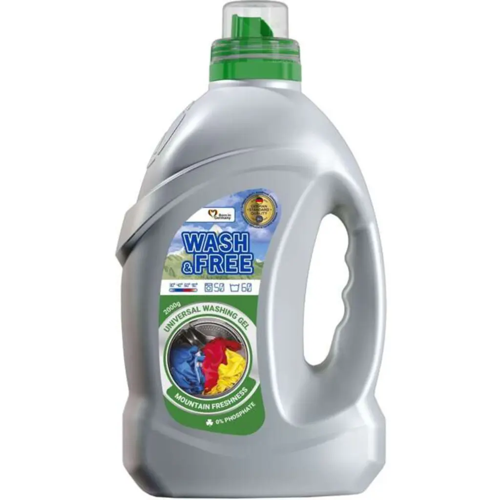 Гель для прання універсальний Wash&free Гірська свіжість чудово відпирає, не залишає слідів на одязі, захищає колір.