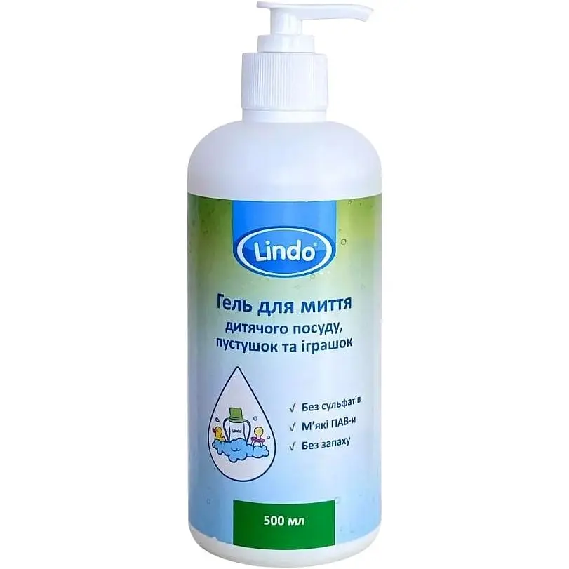 Обрала гель для миття посуду та іграшок Ліндо через зручне пакування з дозатором та склад продукту. Дуже цінно, що засіб містить м'які ПАВ, не має барвників та яскраво вираженого аромату. Добре піниться та очищає від забруднень, в тому числі жирових, навіть у холодній воді. Добре змивається з поверхні посуду та не залишає розводів.