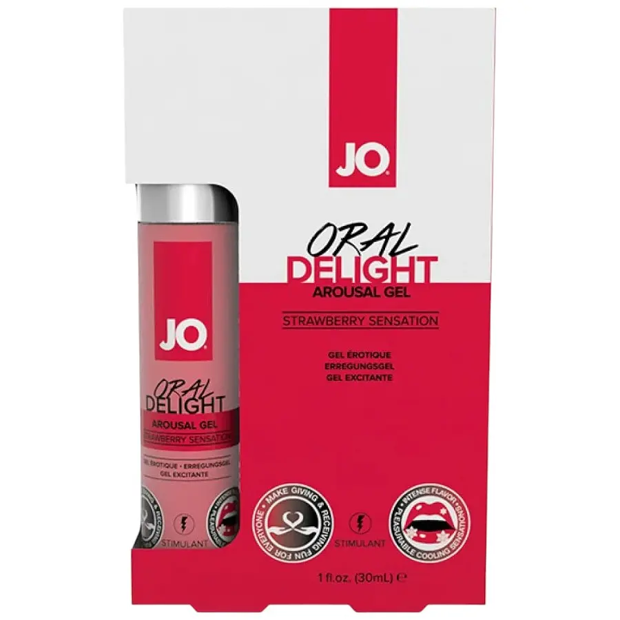 Гель JO Oral Delight Strawberry - 'Оральний восторг' зі смаком полуниці. Підсилює оральне задоволення. Подвійно охолоджувальна дія гелю викликає мурашки збудження.Збільшена чутливість робить дуже яскравий контраст відчуттів - тепла всередині рота та холоду ззовні. Легка солодкість і аромат підвищують слинотечу, забезпечуючи супер-комфортний контакт. Дезенсибілізуючий ефект згладжує неприємні відчуття, дозволяючи комфортно використовувати техніку глибоке глотання. У складі присутній екстракт Бутеа Суперба, який називають 'трав'яною віагрою'.Характеристики: - Гель на водній основі - Без парабенів і L-аргініну - Тривале охолодження і легке оніміння - На основі рослинного гліцерину - Приємний легкий смак полуниціСклад: Вода (Aqua), гліцерин, метилдіізопропілпропіонамід, карбоксамід етилментонію, ароматизатор, ментіллактат, лауріллаурат, кукурудапштам, екстракт Бутеа Суперба, ксантанова камедь, каприлілгліколь, гулозеарова камедь, феноксіетанол, феноксіетанол, гідролізований кукурудапштам, каррагінан, гідролізований октилсукцинат кукурудапштаму, діазолідинілмочовина, барвник Red 40.Об'єм 30 мл