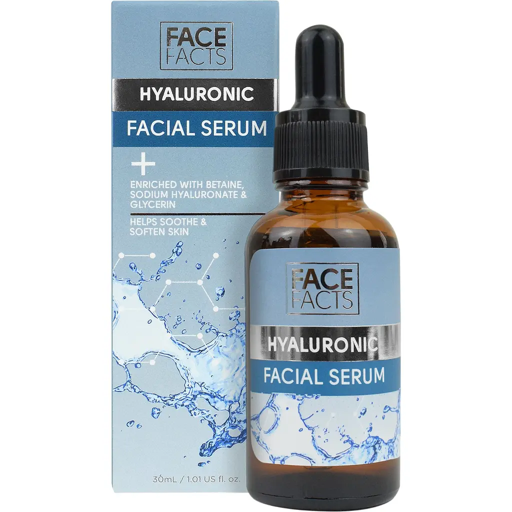 Гіалуронова сироватка для шкіри обличчя Face Facts Hyaluronic Facial Serum - незамінний компонент для щоденного догляду за сухою та зневодненою шкірою.