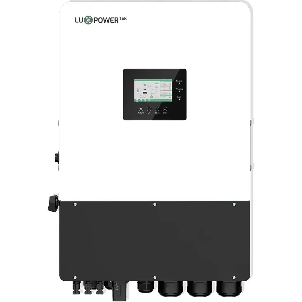 Гібридний сонячний інвертор LuxPower TriP-LB 15000 – це високоякісне рішення для ефективного перетворення сонячної енергії та забезпечення стабільної роботи вашого електропостачання. Він здатний працювати як із сонячними панелями, так і з акумуляторними батареями, підтримуючи три фази і забезпечуючи номінальну потужність 15 000 Вт і пікову потужність до 22 500 Вт. Цей інвертор здатний ефективно працювати з вхідною напругою сонячних панелей до 1000 В і максимально використовувати потужність 22.5 кВт від панелей, що дозволяє отримати високу ефективність перетворення, що досягає 97.7%.