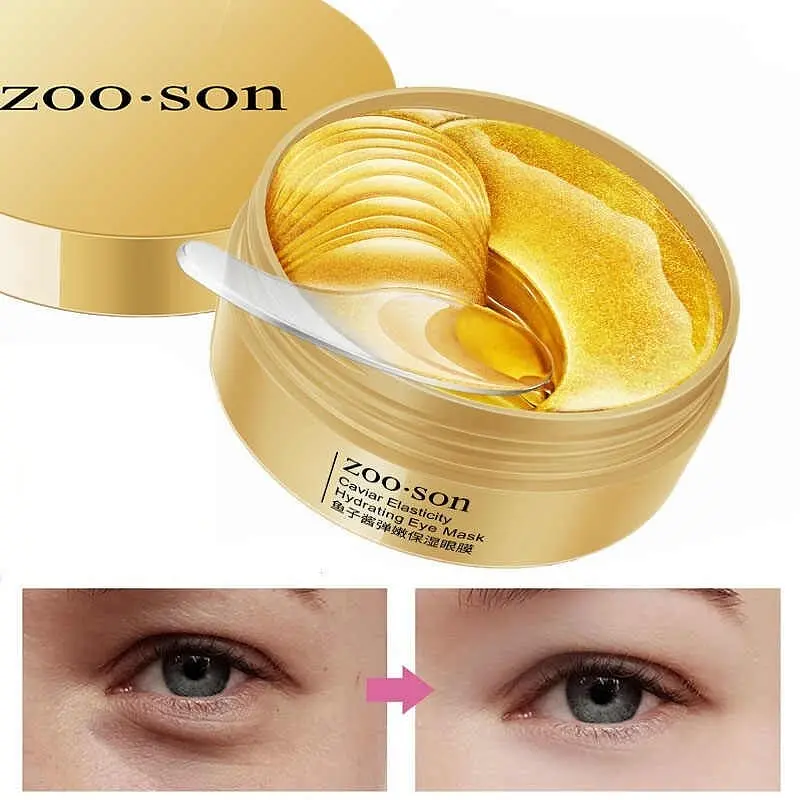 Zoo Son Caviar Elasticity Hydrating Eye Mask - гідрогелеві патчі для інтенсивного догляду за ніжною шкірою навколо очей. Збагачені екстрактом червоної ікри, золотом і гіалуроновою кислотою, вони ефективно зволожують і омолоджують шкіру.