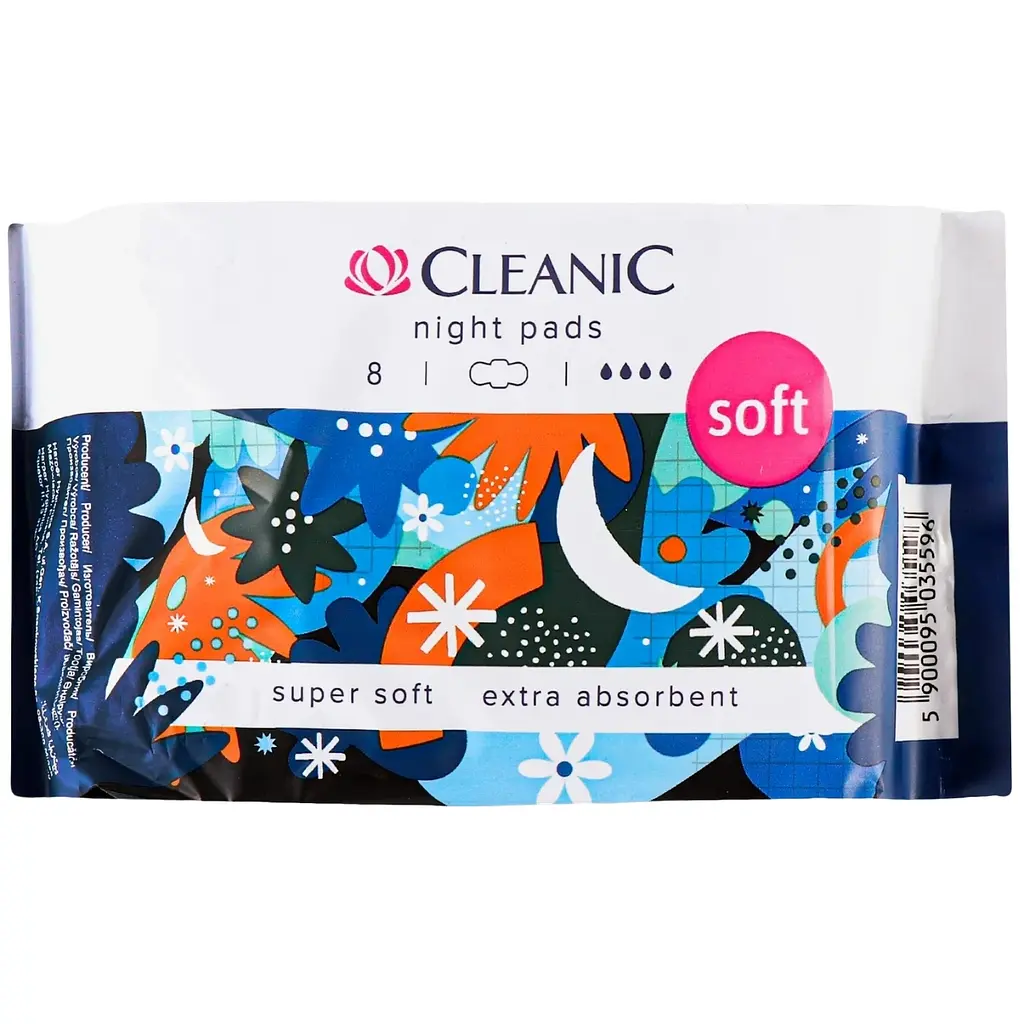 Cleanic Soft Night - це поєднання виконаного в унікальній технології подвійного поглинаючого шару, що надійно охороняє від протікань, і еластичного верхнього шару, максимально м'якого та ніжного для шкіри.