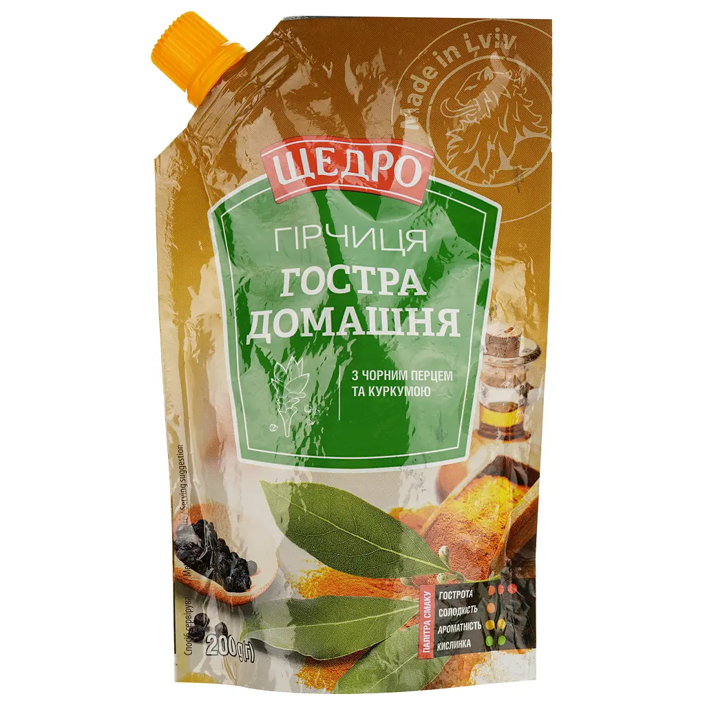 До кінця акції 12 днівГірчиця Щедро Гостра домашня - це високоякісний продукт, який додасть гостроти та аромату вашим стравам. Ця гірчиця виробляється з любов'ю та турботою, використовуючи лише найкращі інгредієнти, щоб досягти ідеального смаку та якості.