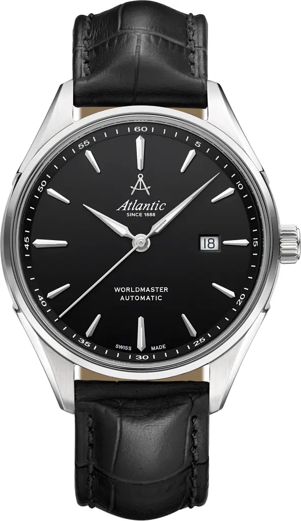Про товар Колір корпусу – сріблястий; Форма корпусу – круглі; Колір циферблату – чорний; Тип індикації – аналоговий; Скло - сапфірове; Фабрика зборки – Швейцарія; Тип механізму – механіка з автопідзаводом; Матеріал шкіра; Браслет / Ремінець - ремінець; Товщина – 11; Стиль – Класика; Водозахист - 50 WR;