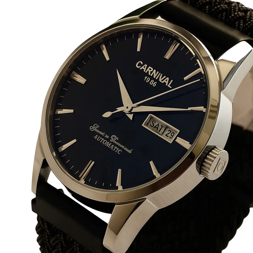 Тип механізму: Механічні, Механіка З Автопідзаводом, Браслет / Ремінець: Ремінець, Товщина: 14 мм, Вага, г: 120, Фабрика збірки: Китай, Функції: Показують дату, день тижня, Діаметр: 38 мм, Індикація: Аналогові, Скло: Сапфірове, Особливо дощ, Формат часу: 12/24 год, Колір корпусу: Сріблястий, Стиль: Класичні, Особливості циферблата: Центральна секундна стрілка, Розміри, мм: 38х14, Матеріал корпусу: Сталь вищої проби, Форма корпусу: Круглі, Матеріал ремінця: Шкіряний, Матеріал: Метал Кліпсова Carnival, По діаметру годин: Невеликі, Довжина ремінця: 25 см (регулюється), Для чоловіків: Для чоловіків, Можливість зняти ремінець: Так, Гарантія: 12 місяців, Основний колір циферблату: Чорний, Тип цифр: Мітки, Задня кришка: Прозора, Автомобільна, Ширина ремінця: 20 мм, Точність ходу: +/- 30 сек/день, По країні механізму: З японським механізмом, Виробник: Carnival, Додатковий ремінець: Нейлон