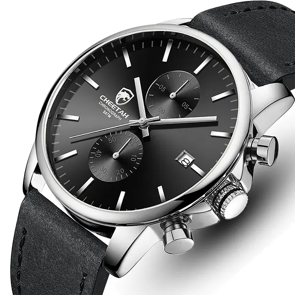 Тип механізму: Кварцовий, Водостійкість: 3 атм - міті руки, Тип ремінця: Шкіряний, Бренд: Cheetah, Стать: Чоловічі, Індикація: Аналогові, Функції: Хронограф, секундомір, дата, Стиль: Класичний, Скло: Мінеральне, Матеріал: Метал, Застібка: Класична,2 Матеріал ремінця: Шкіряний, Додаткові характеристики: Індикація дати, Особливості: Інструкція на російській мові, Вага, г: 160, Розміри, мм: 42х12, Колір корпусу: Сріблястий, Формат часу: 12/24 г, Індикація: Минути, секунди, години, Вид і: Фабрика збірки: Китай/Японія, Тип циферблата: Аналоговий (стрілочний), Особливості циферблата: Центральна секундна стрілка, Задня кришка: Закрита, Характеристики механізму: Miyota (Японія), Гарантія: 12 місяців, Механізм: Кварцовий, Браслет / Ремінець: Ремінець: циферблата: Чорний, Колір ремінця: Чорний, Водостійкість: 3 атм, Скло: Мінеральне, Колір корпусу: Сріблястий, Товщина: 12 мм, Вага, г: 160, Індикація: Хвилини, секунди, годинник, Можливість зняти ремінець: Да, По діаметру годин: Невеликі, Довжина 12/24 год, Застібка: Класична, Розміри, мм: 42х12, Характеристики механізму: Miyota (Японія), Функції: Хронограф, секундомір, дата, По країні механізму: З японським механізмом, Ширина ремінця: 22 мм, Додаткові характеристики: Індикація дати, Для чоловіків: Для чоловіків: Китай/Японія, Основний колір циферблату: Чорний, Індекси, Особливості циферблату: Центральна секундна стрілка, За країною механізму: З японським механізмом