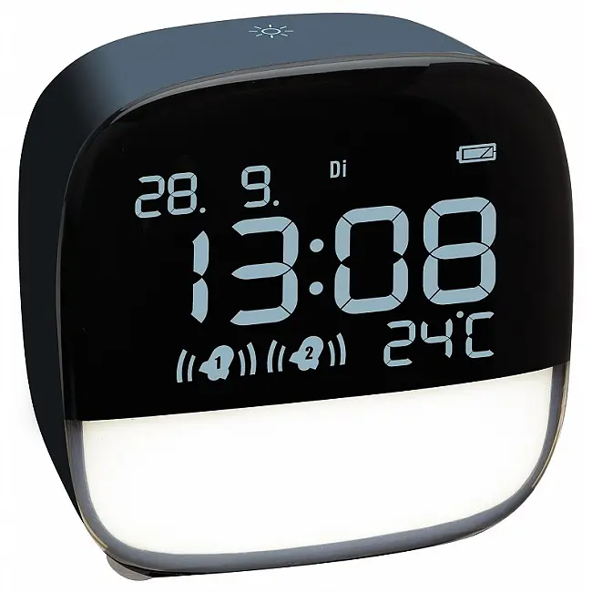 Виробник: TFA Dostmann GmbH & Co.KG, Germany Особливості: Будильник із вбудованим нічником 2 будильники, 3 рівні гучності, функція повтору. Температура у приміщенні. Дата з днем тижня (німецька). Нічник з функцією автоматичного відключення, регульована тривалість (від 5 до 60 хвилин), димований (10-100%) Вбудований акумулятор із зарядкою через кабель Micro-USB та адаптер живлення У режимі роботи від батареї: підсвічування дисплея повільно гасне через 7 секунд (функція енергозбереження), увімкнення дисплея торканням або звуком Сучасний округлий дизайн із матовим лакованим корпусом Підставка з 4 гумовими накладками, яка не ковзається. Адаптер живлення та кабель Micro-USB у комплекті. Цей цифровий будильник вражає безліччю функцій і можливостей налаштування, включаючи вбудоване нічне підсвічування. Завдяки матовому лакованому корпусу і сучасній округлій формі він чудово виглядає на будь-якому столику. Ви можете використовувати будильник як від мережі, так і вбудованого акумулятора. У центрі уваги великого дисплея, звичайно, час. Але ви також можете зручно читати дату та день тижня. Вбудований термометр вимірює температуру в приміщенні та забезпечує приємний клімат у спальні. Зрештою, легко спати у правильній атмосфері. Умови освітлення також є фактором гарного самопочуття. Дітям особливо подобається нічник, коли вони засинають. Іншим, наприклад, потрібна орієнтація при відвідуванні туалету вночі. Просто плавно регулюйте яскравість вбудованого нічного освітлення на свій смак. Або ви можете використовувати його автоматичний таймер, і світло вимкнеться саме. Встановіть тривалість від 5 до 60 хвилин. Час вставати? Один із трьох рівнів гучності обов'язково підійде саме вам. Завжди є час прокинутися із практичною функцією повтору. А якщо ви хочете почати свій день пізніше у вихідні, ви можете встановити два різних часу будильника. Цифровий будильник можна дуже легко та ефективно заряджати за допомогою кабелю Micro-USB. У режимі роботи від батареї час роботи без нічника близько 15-20 днів. Для економії енергії дисплей повільно вимикається через 7 секунд. Ви можете повторно активувати дисплей, торкнувшись або видавши звук. Дисплей залишається постійно активним, якщо ви залишите пристрій підключеним до мережі. У комплекті кабель Micro-USB та мережевий адаптер. Якісний продукт від TFA Dostmann GmbH & Co.KG, Germany