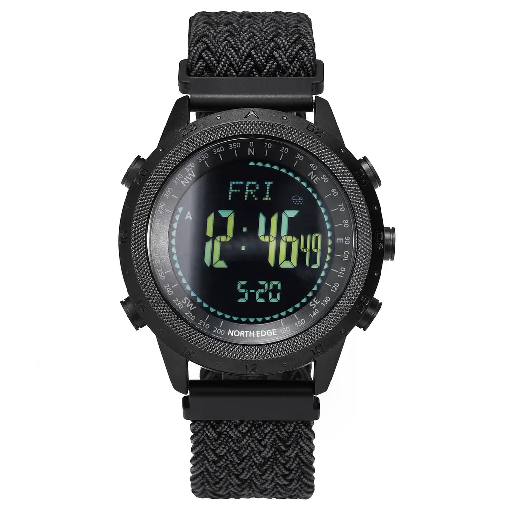 Бренд: North Edge, Браслет / Ремінець: Ремінець, Стать: Чоловічі, Товщина: 14 мм, Вага, г: 95, Фабрика збірки: Китай, Функції: Водостійкість 50 метрів, компас, барометр, альтиметр, термометр, крокомір, секундомір, будильник, таймер, підсвіт. Діаметр: 46 мм, Індикація: Хвилини, годинник, Скло: Мінеральне, Особливості: Інструкція російською мовою, Вигляд індикації: Арабські цифри, Водостійкість: 5 атм - плавання, Формат часу: 12/24 год, Колір корпусу: Чорний, Тип: Кварцовий, Стиль, Стиль механізму: Кварцові, Матеріал корпусу: Сталь, Форма корпусу: Круглий, Матеріал ремінця: Тканинний, Матеріал: Метал, Колір ремінця: Чорний, Застібка: Класична, По діаметру годин: Середні, Довжина ремінця: 25 см (регулюється), Для чоловіків: Для чоловіків, Для військових: Тактичні, Можливість з циферблата: Чорний, Ширина ремінця: 22 мм, Характеристики механізму: Apache North Edge (Японія), По країні механізму: З японським механізмом, Наявність компасу: З компасом