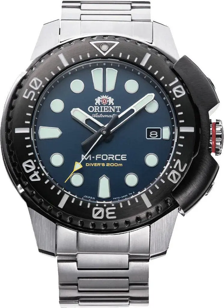 Про товар Колір корпусу - срібло; Форма корпусу - не стандартна форма; Діаметр корпусу дорівнює 45; Колір циферблату синій; Тип індикації - аналоговий; Скло - сапфір; Тип механізму -це механік з автоматичним зворотним бекком; Матеріал - нержавіюча сталь; Браслет / ремінь - браслет; Товщина - 13,2; Стиль - спорт; Захист води - 200 WR;