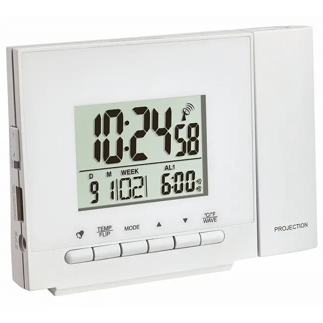 Виробник: TFA Dostmann GmbH & Co.KG, Germany Особливості: Цифрова проекція на стіну або стелю поточного часу або часу/температури Високоточний радіокерований годинник (DCF77 - сигнал) Відображення календарного тижня, дати та дня тижня З часовим поясом та можливістю ручного налаштування Подвійний час Будильник з двома часами та функцією повтору Температура у приміщенні Підсвічування Функція заряджання для мобільних пристроїв через USB (макс. 500 мА) Адаптер живлення у комплекті Ви прокидаєтеся вночі час від часу, запитуючи, котра година? Врятуйте себе від нудного пошуку потрібної кнопки на вашому будильнику. Будильник TFA відображає поточний час на стіні або стелі вашої спальні у вигляді чітких червоних цифр. Завдяки проектору, що обертається, ви можете налаштувати дисплей на ідеальний кут огляду. Якщо ви хочете перевірити температуру в приміщенні на додаток до часу, вона також може відображатися по черзі. На додаток до цієї практичної спеціальної функції пристрій також відповідає всім вимогам для радіокерованого будильника. Два різні часи будильника, наприклад, у будні та вихідні дні ви завжди будете вчасно прокидатися. Завдяки функції повтору, ви можете отримати кілька додаткових хвилин сну. Будильник відображає календарний тиждень, дату та день тижня. Радіокерований годинник отримує час через сигнал DCF 77. Це завжди дасть вам поточний час з точністю до секунди, а дата з'явиться без встановлення. За бажанням ви також можете встановити другий час, ідеально, якщо ви часто дзвоните за кордон. Вбудований термометр вимірює температуру в приміщенні та забезпечує гарний клімат у спальні. Для гарного нічного сну температура не повинна перевищувати 18 °C або опускатися нижче 16 °C. Через порт USB пристрій є зарядною станцією для мобільних пристроїв, таких як ваш смартфон.