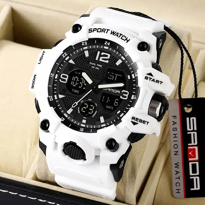 Тип механізму: Кварцові, Водостійкість: 5 атм - плавання, Функції: Секундомір, будильник, підсвічування, година показується на циферблаті й стрілками, дата, день тижня, місяць, Стиль: Спортивний, Скло: Полікарбонатне, Матеріал: Пластик, Круг,1, Класична,4 Матеріал ремінця: Каучуковий, Додаткові характеристики: Індикація місяця, Особливості: Інструкція на російській мові, Вага, м: 60, Розміри, мм: 48х14, Колір корпусу: Білий, Формат часу: 12/24 г, Індикація: Минути, секунди, години, Вид індикації, Інд Фабрика збірки: Китай, Тип циферблату: Комбінований (аналогово-стрілочний), Гарантія: 12 місяців, Механізм: Кварцовий, Браслет / Ремінець: Ремінець, Тип: Чоловічі, Матеріал: Пластик, Стиль: Спортивний, Механізм: Кварцовий, Тип механізму: Quartzа, Форма ремінця: Білий, Водостійкість: 5 атм - плавання, Скло: Полікарбонатне, Колір корпусу: Білий, Товщина: 14 мм, Вага, г: 60, Індикація: Хвилини, секунди, годинник, Можливість зняти ремінець: Ні, По діаметру годин: Великі, Довжина ремінця2, см ч, Застібка: Класична, Розміри, мм: 48х14, Функції: Секундомір, будильник, підсвічування, час показується на циферблаті та стрілками, дата, день тижня, місяць, Додаткові характеристики: Індикація місяця, Для чоловіків: Для чоловіків, Для військових: Тактичні, Матеріал корпусу: Полікарбонат, Полікарбонат арабські цифри