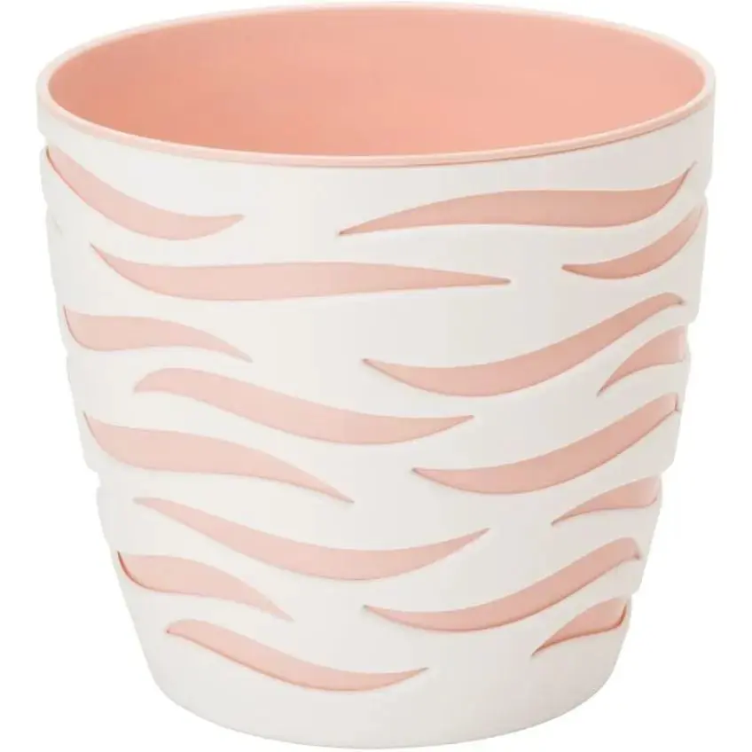 Квітковий горщик має в комплекті декоративне матове кашпо оформлене вирізаними хвилями, що додають горщику привабливості.
