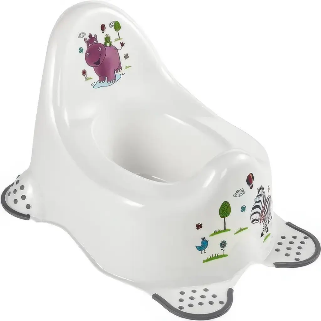 Однією з ключових особливостей цього горщика є протиковзні елементи, які гарантують його стійкість на підлозі. Завдяки цим елементам, горщик не ковзає під час використання, що забезпечує додаткову безпеку і запобігає небажаним рухам. Це важливо для малюків, які тільки починають користуватися горщиком, адже така стабільність дозволяє дитині відчувати себе впевнено.