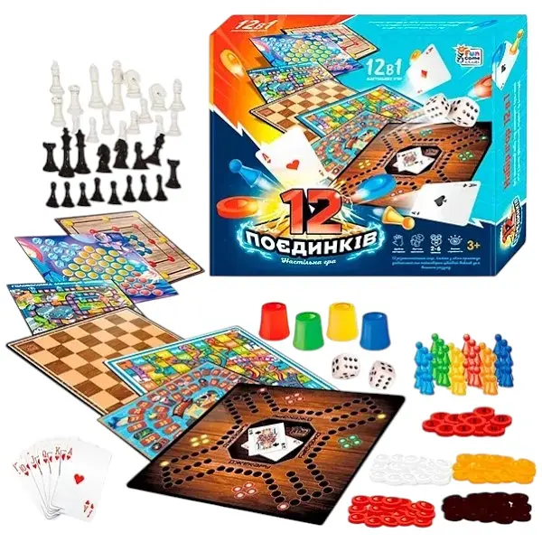 Гра 12 поєдинківЦей захоплюючий набір ігор перетворить будь-який стіл на центр креативності, стратегії та веселощів. Ви отримаєте 12 різноманітних ігор, кожна з яких пропонує унікальний і неймовірно цікавий виклик для вашого розуму. Ігровий набір є ідеальним компаньйоном для будь-якого заходу, будь то вечірка з друзями, сімейне свято або просто час, проведений разом з близькими. У наборі представлені: "Головоломка дорожньої безпеки" кубів""Джекарю""Інтелектуальний вимір""Дев'ять людей Морріса""Здобувачі""Брідж""24 очки""Змії та сходи" Країна виробник: Китай