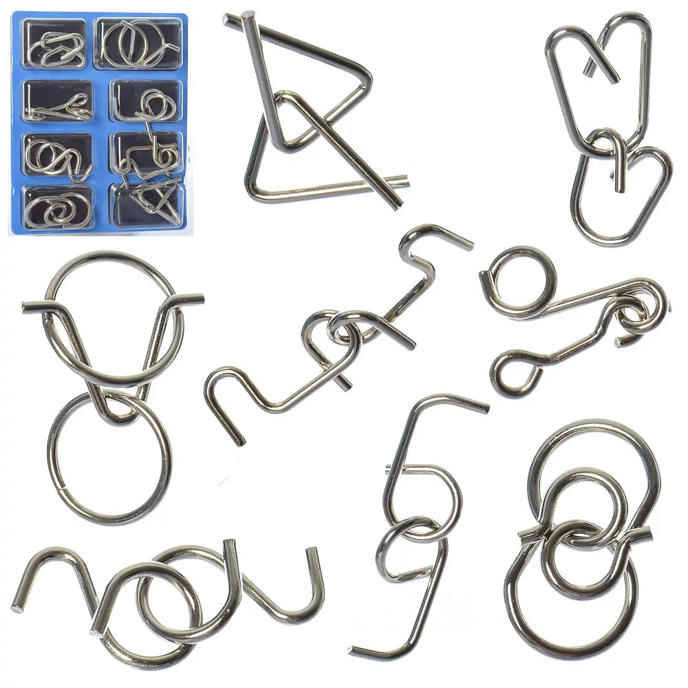 Гра головоломка, метал, 8 шт., у слюді, 12x18x3 см - набір із 8 металевих головоломок розміром 12x18x3 см для дітей від 6 років. Складні завдання розвивають логіку та терпіння. Ідеально для інтелектуального дозвілля.