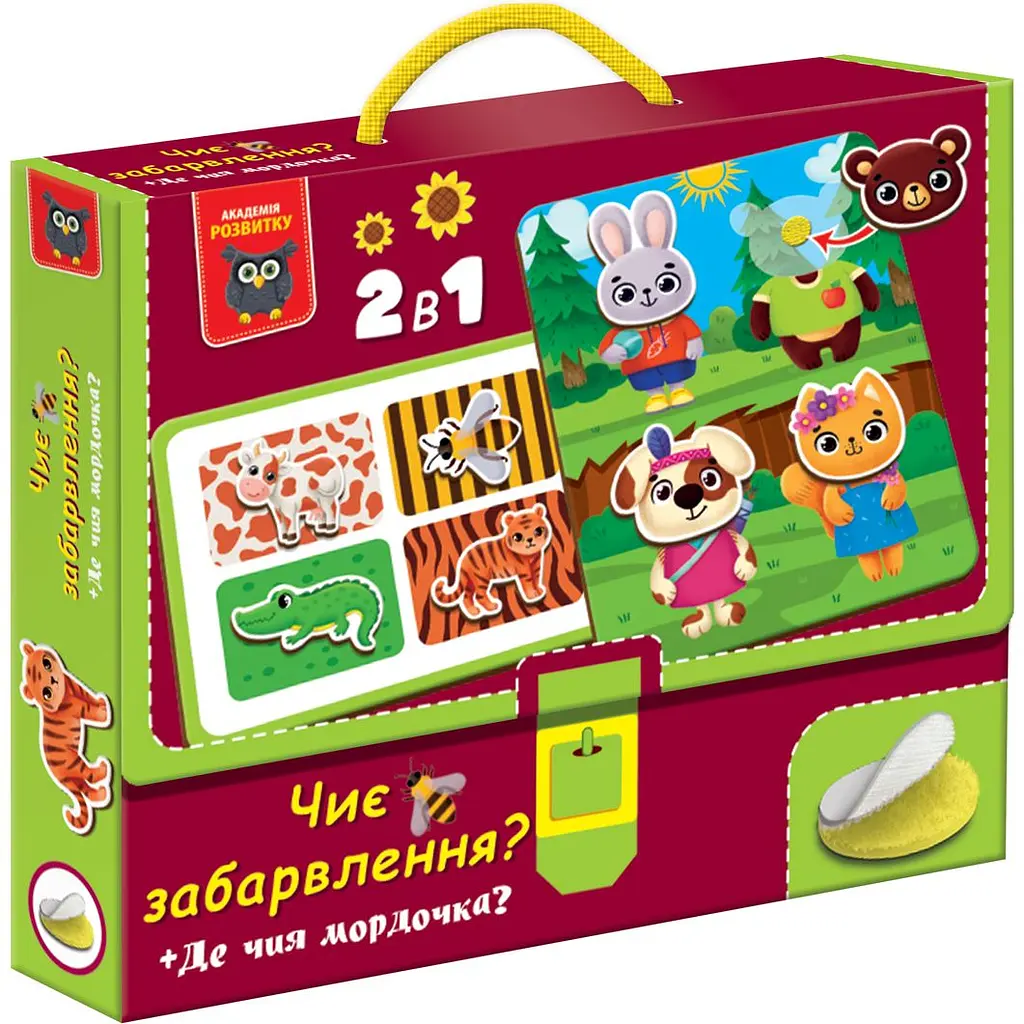 Цікава гра, хоча для 1,5 річної дитини трохи зарано, але їй цікаво відліпати і приліпати тваринок. Окремої уваги заслуговує коробка-сумочка, вона сподобалась дитині не менше за гру. Чудова гра для розвитку дрібної моторики та координації рухів у діток. Яскрава, чіткі зображення, милі та гарні.