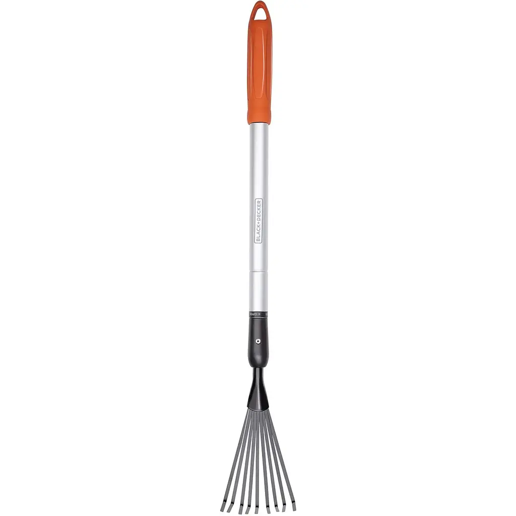 Граблі садові Black+Decker поєднують легкість і зручність у використанні. Відрізняється стильним дизайном, поєднуючи в собі помаранчевий, чорний і сріблястий кольори. Ця колірна гамма надає інструменту сучасного вигляду і полегшує його пошук серед садового інвентарю.