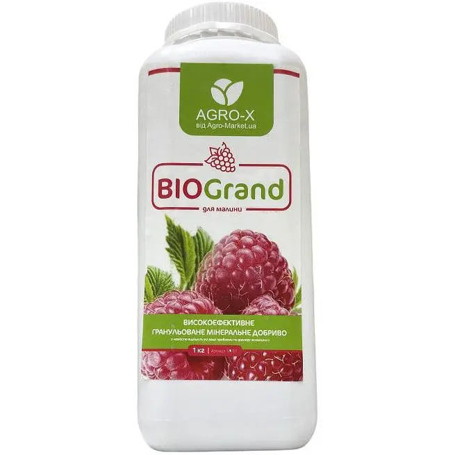 BIOGrand - високоефективне гранульоване мінеральне добриво з легкістю розв'язувати ваші проблеми по відходу за малиною.Вам більше не треба використати декілька видів добрив, ви можете обійтися одним перевіреним рішенням. BIOGrand для малини підвищує загальне здоров'я рослин, вони родять довше; підвищується врожайність; одночасне дозрівання ягід; мінімальна кількість полеглих і гнилих плодів; збільшується термін зберігання зібраного урожаю.