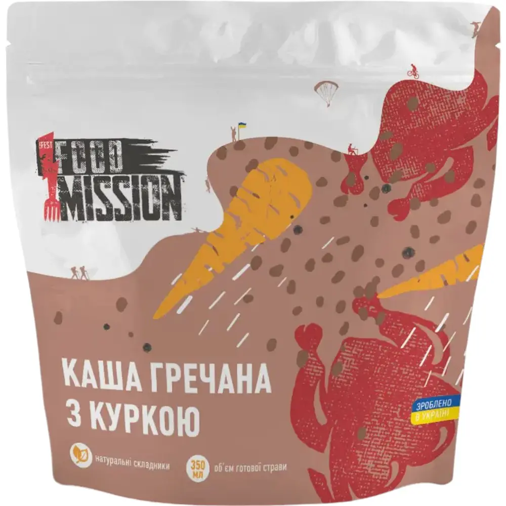 Гречка з куркою Food Mission - це смачна та поживна страва, яка поєднує в собі корисні властивості гречаної крупи та ніжне куряче філе. Ідеально підходить для швидкого та ситного перекусу в будь-яких умовах: на роботі, в подорожі або вдома.