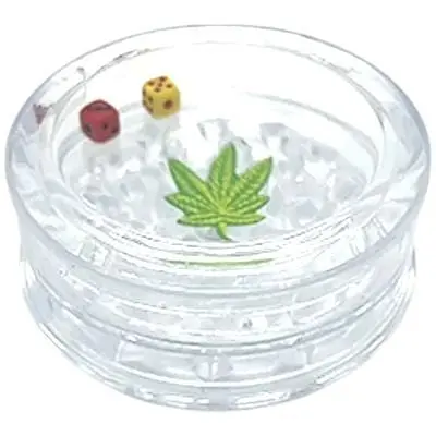 Гріндер Design Hemp Leaf Acrylic. Простий у використанні акриловий гріндер з додатковим відсіком для зберігання сумішей і кумедною грою в кістки як доповнення. Незамінний пристрій для подрібнення органічних бутонів. Завдяки компактним розмірам, завжди можна тримати під рукою.