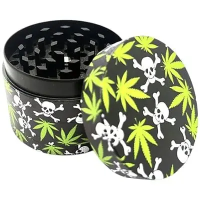 Гріндер Design Skull 3 50 mm. Стильний і функціональний аксесуар для шанувальників тематичних зображень у вигляді черепів і конопляних суцвіть. Виготовлений з якісного металу, забезпечує ефективне подрібнення органічних сумішей. Діаметр 50 мм робить його компактним і зручним у використанні, а яскравий дизайн із яскравим зображенням додає оригінальності.