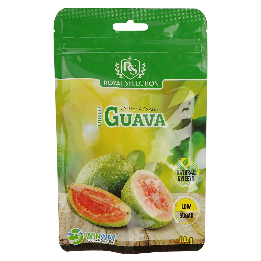 Гуава Winway RS сушена - цукат, що має багатий аромат та неповторний смак, завдяки солодкій незвичайній м'якоті, нагадує смак українських садових ягід. Вона неймовірно смачна і багата поживними речовинами. А також, це низькокалорійний фрукт, багатий клітковиною і є відмінним доповненням до здорової дієти.