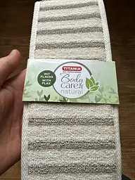 Цей чудовий аксесуар від відомого німецького бренду Titania виготовлений з натуральних матеріалів, які дбайливо впливають на епідерміс. Ергономічна форма ременя зручна для використання завдяки спеціальним ручкам, що дозволяє легко та ефективно очистити все тіло. Забезпечує щадне, але глибоке очищення шкіри від забруднень. Жорстка поверхня м'яко видалить ороговілі клітини, даруючи шкірі приємну гладкість і шовковистість.