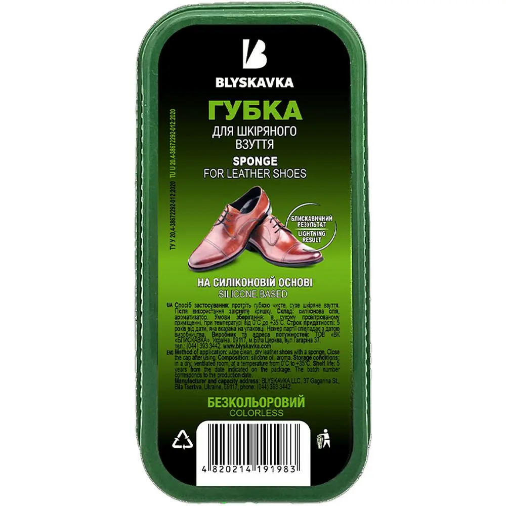 Чистота та доглянутість шкіряного взуття починається з правильного інструменту. Губка для взуття Blyskavka - ідеальний помічник у догляді за вашою улюбленою парою взуття. Виготовлена з високоякісного матеріалу, вона ніжно, але ефективно видаляє бруд, пил та навіть найтонші сліди, не пошкоджуючи поверхню взуття.