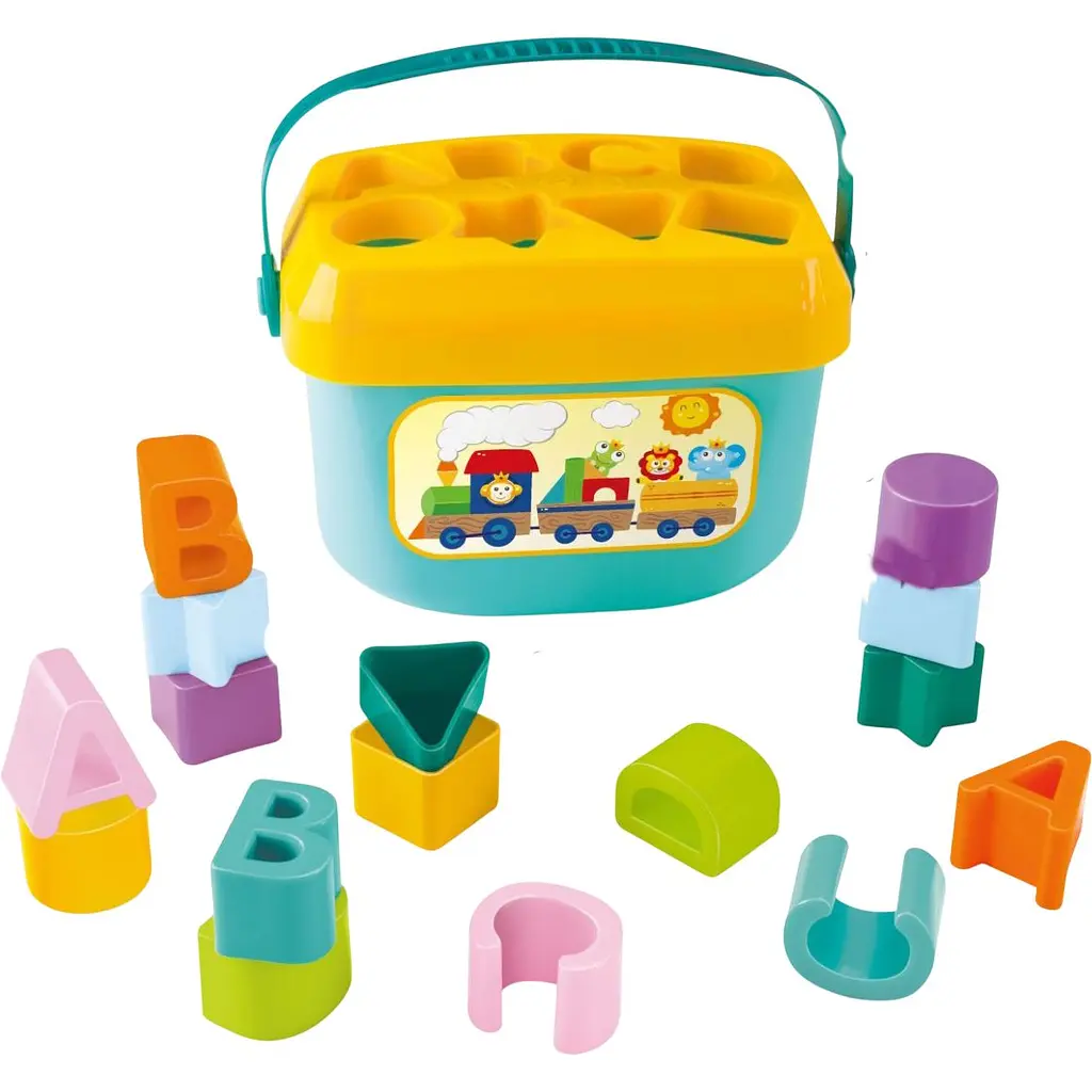 Відерце-контейнер зі зручною ручкою, знімна кришка-сортер, 16 фігурних вкладишів