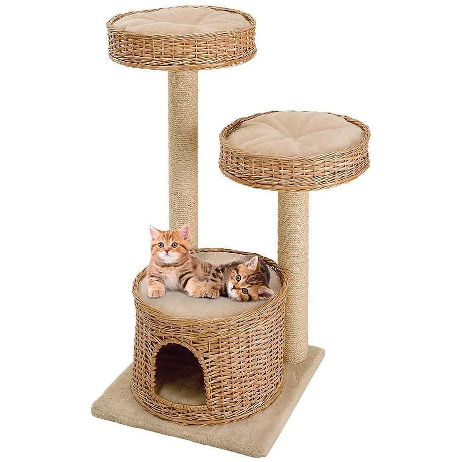 Amir — одна з моделей ігрових будиночків від Ferplast у комплекті з колонами з сизалю та поличками з м'якими подушками. Міцний та стійкий завдяки тому, що виготовлений з дерева з оригінальною плетеною обробкою. Як і всі меблі від Ferplast, ця модель виготовлена з максимальною турботою та увагою до деталей. Йде в комплекті з двосторонніми подушками, які можна використовувати на ваш розсуд. Великі колони з сизалю чудово підійдуть для заточування кігтів, що дозволить захистити меблі у вашому домі від подряпин. Amir стане чудовим тренажером для вашої кішки, допоможе їй завжди залишатися у формі. Ваш улюбленець зможе стрибати з полиці на полицю, а потім спостерігати за всім, що відбувається.