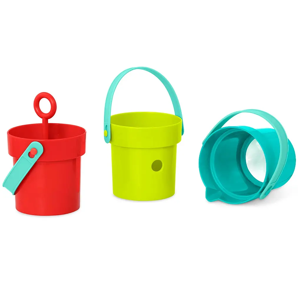 Ігровий набір Battat Кольорові відерця - це комплект найнеймовірніших відерець, які Ви коли-небудь бачили! Він розважить вашого малюка як у ванній чи басейні, так і в пісочниці.