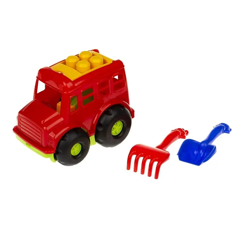 Яскравий дитячий набір для пісочниці з машинкою та інструментами стане чудовою іграшкою для ігор на вулиці, у дворі або на пляжі. Маленька машинка з великими колесами легко рухається по піску, а лопатка та грабельки допоможуть дитині копати, будувати пісочні замки та створювати різні фігури.