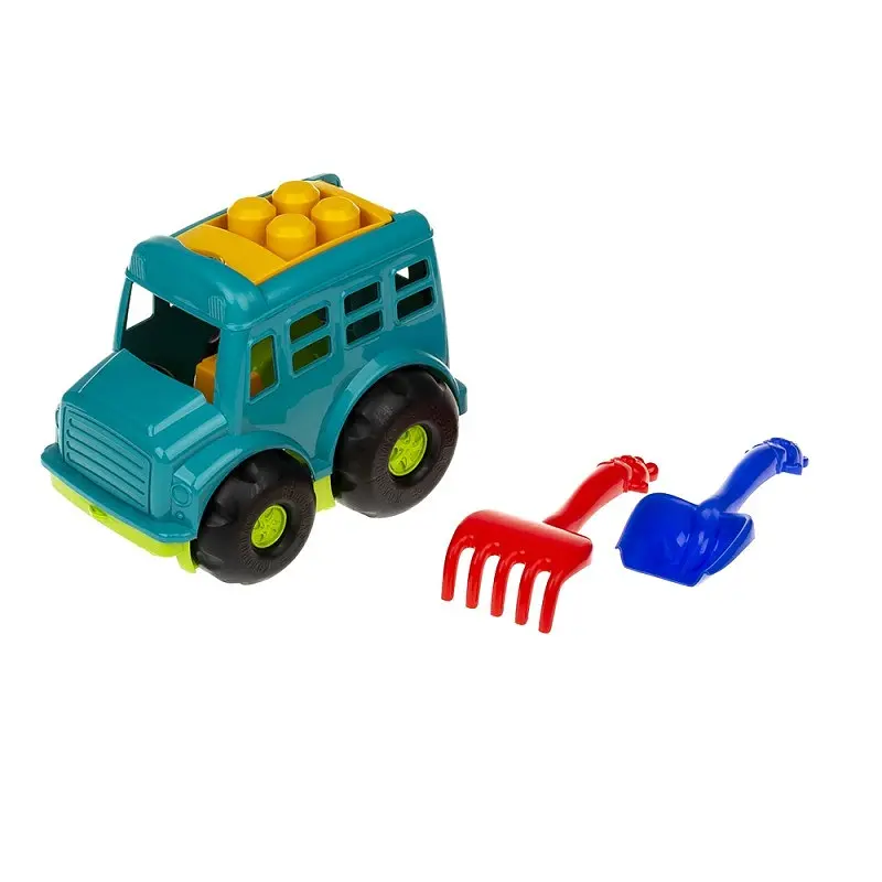 Яскравий дитячий набір для пісочниці з машинкою та інструментами стане чудовою іграшкою для ігор на вулиці, у дворі або на пляжі. Маленька машинка з великими колесами легко рухається по піску, а лопатка та грабельки допоможуть дитині копати, будувати пісочні замки та створювати різні фігури.